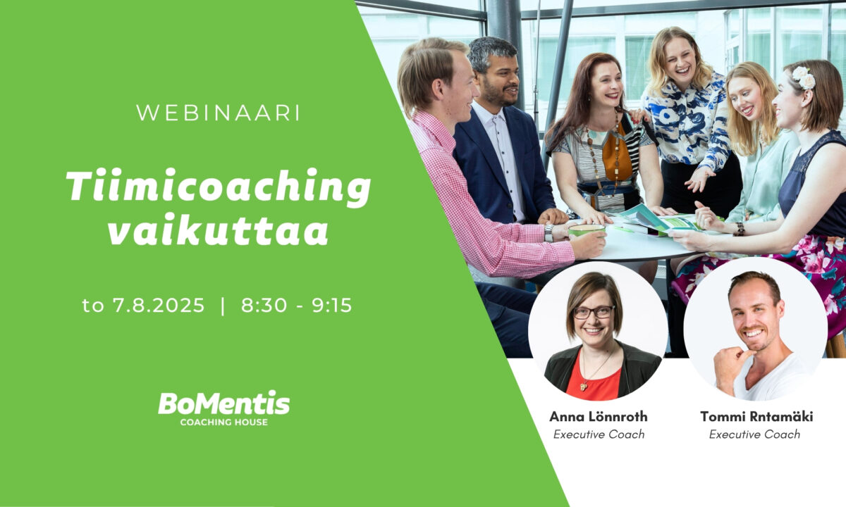 Haluatko saada tiimit toimimaan paremmin? Tervetuloa ajattelua herättävään webinaariin to 7.8.2025 klo 8.30-9.15, jossa pysähdytään tiimicoachingin käytäntöjen äärelle.